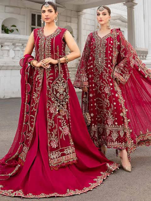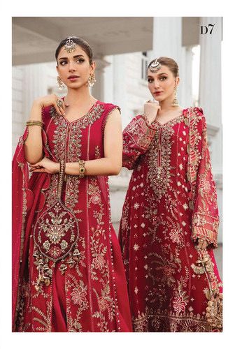Premium embroidered chiffon front (Embroidered Neck-Line with Embroidered Daman Border Spengle and Ada work)