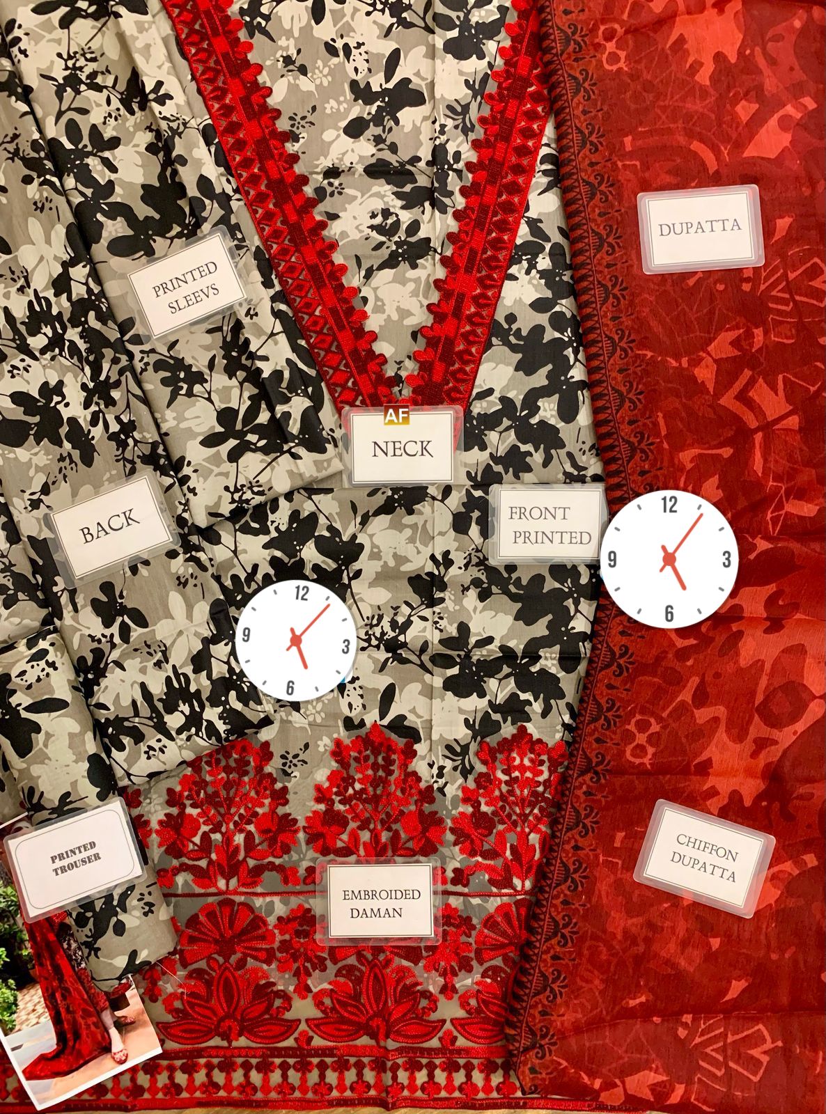 *Printed lawn front with heavy Aari embroidered work neck patch & daman patch*