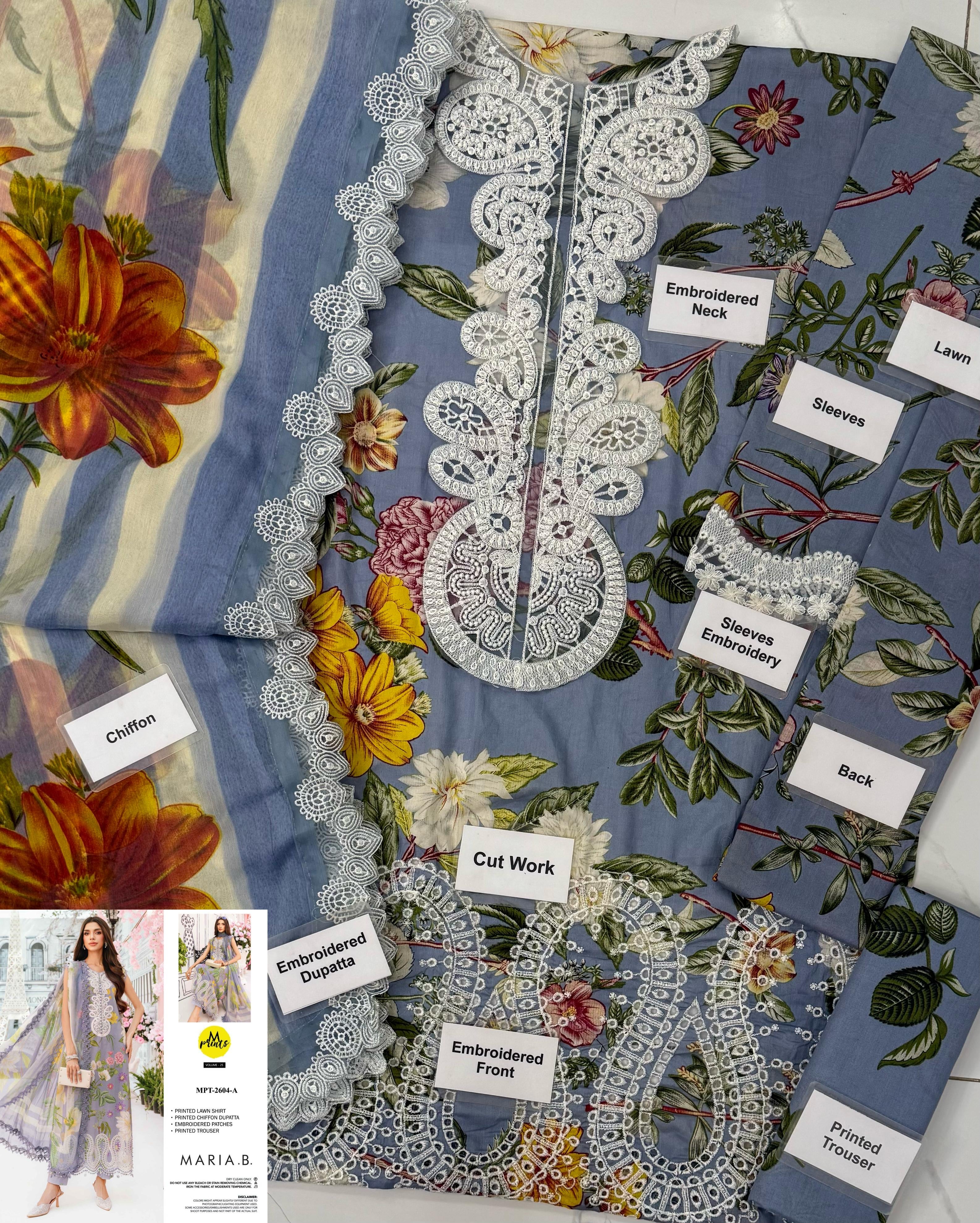 • Printed Chiffon Dupatta With 4 Sided Embroidered Laced