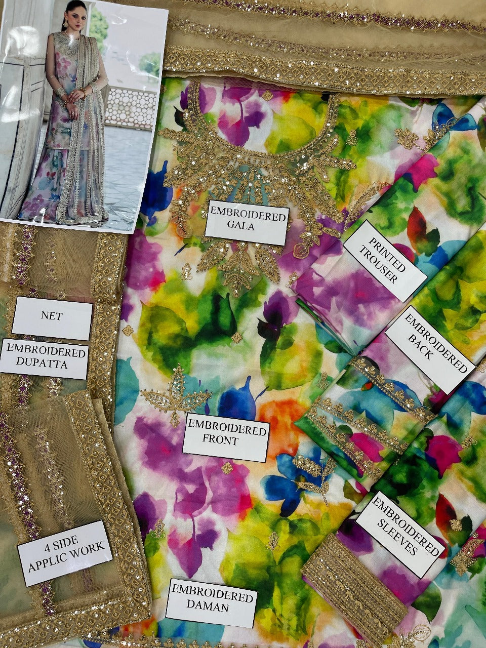 -HEAVY EMBROIDERED NECK PATCH(SAME AS ORIGINAL) WITH ZARI AND SEQUENCE EMBROIDERY ON FRONT