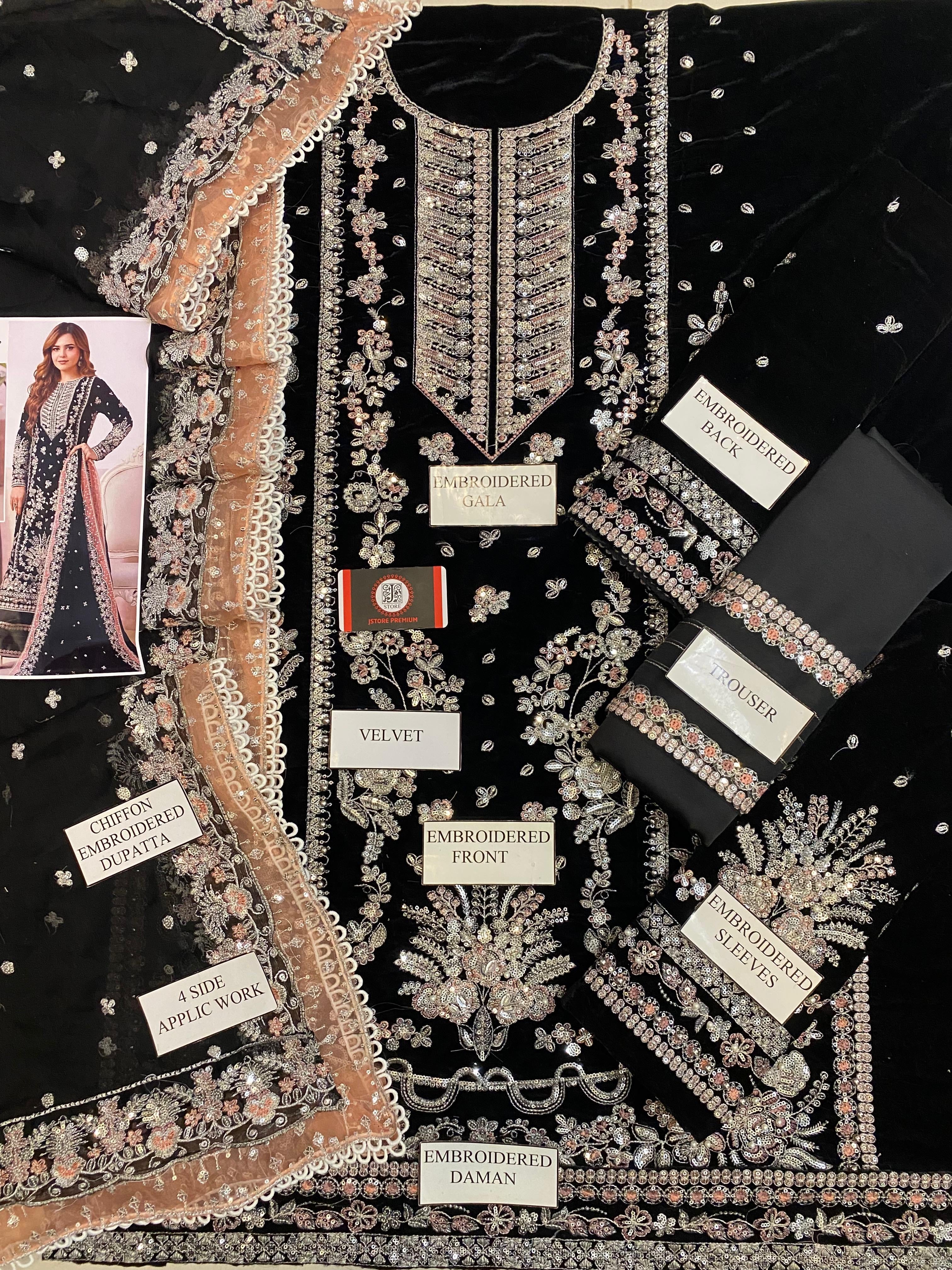 -Velvet fully heavy alternet embroidered sequence work with thread and zari embroidery on fabric